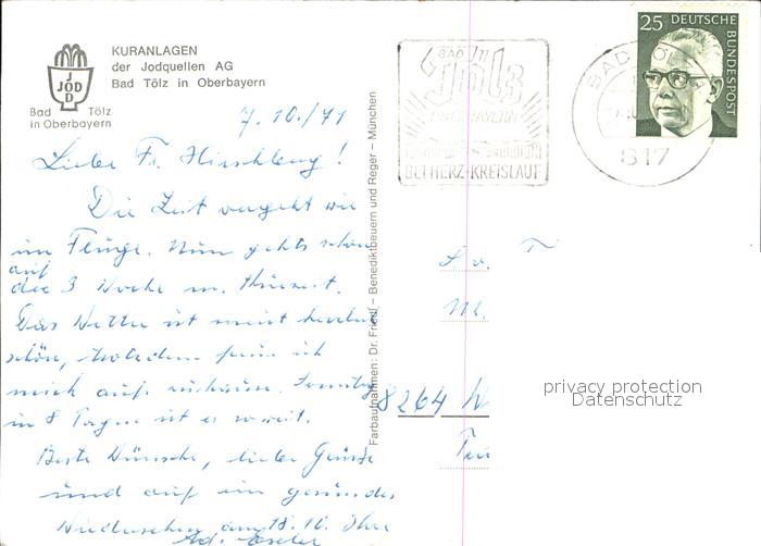 72568549 alte Postkarte Bad Toelz Kuranlagen Jodquellen postalisch gelaufen Erhaltung siehe scans [KathaD79] KatCode: 11110009173112