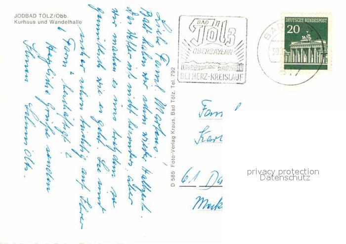 72790056 alte Postkarte Bad Toelz Kurhaus Wandelhalle Panorama postalisch gelaufen Erhaltung siehe scans [AndreD76] KatCode: 11110009173112