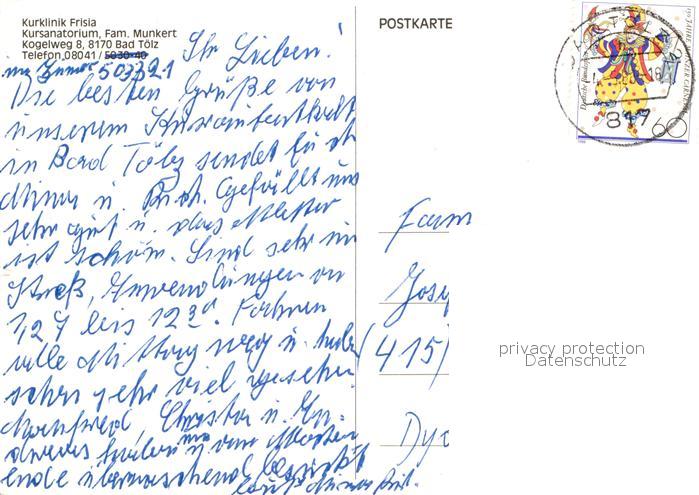 72961804 alte Postkarte Bad Toelz Kurklinik Frisia postalisch gelaufen Erhaltung siehe scans [NatalD47] KatCode: 11110009173112