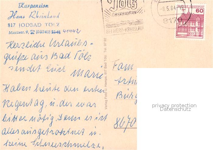 73027690 alte Postkarte Bad Toelz Kurpension Haus Rheinland postalisch gelaufen Erhaltung siehe scans [KathaD81] KatCode: 11110009173112