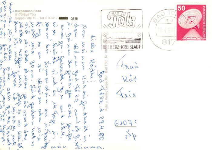 73879341 alte Postkarte Bad Toelz Kurpension Rosa postalisch gelaufen Erhaltung siehe scans [FriedD77] KatCode: 11110009173112