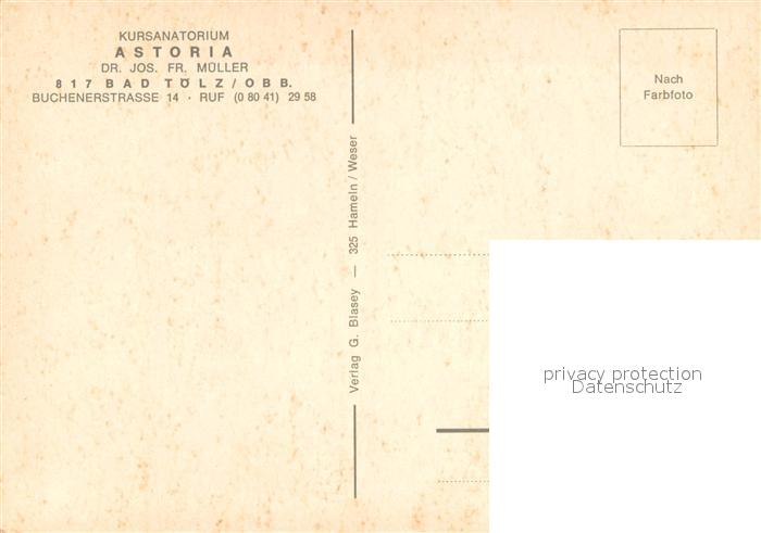 73747572 Bad Toelz Kursanatorium Astoria postalisch nicht gelaufen Erhaltung siehe scans [WerneD78] KatCode: 11110009173112