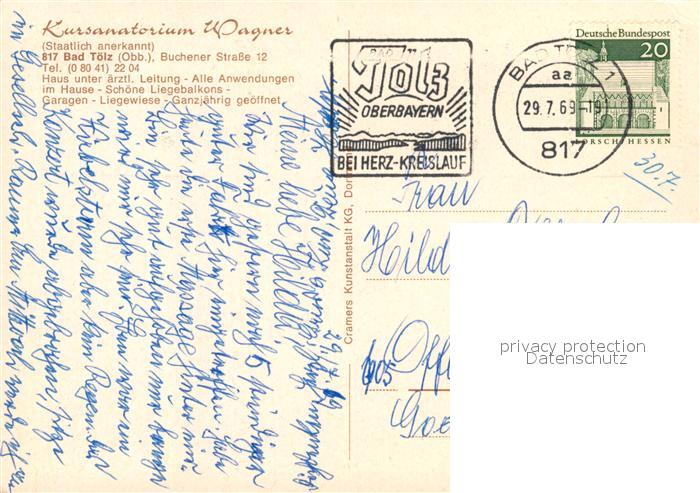 73030640 alte Postkarte Bad Toelz Kursanatorium Wagner Panorama postalisch gelaufen Erhaltung siehe scans [KathaD81] KatCode: 11110009173112