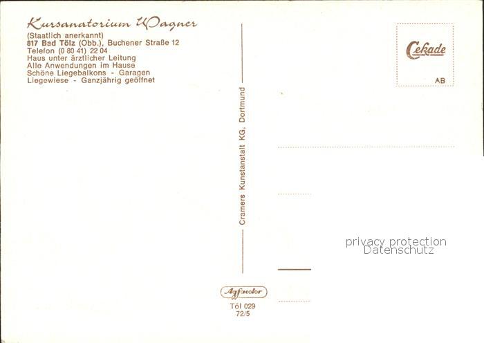 71988060 Bad Toelz Kursanatorium Wagner postalisch nicht gelaufen Erhaltung siehe scans KatCode: 11110009173112