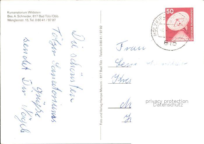 72583900 alte Postkarte Bad Toelz Kursanatorium Wildstein postalisch gelaufen Erhaltung siehe scans [LiesaD40] KatCode: 11110009173112