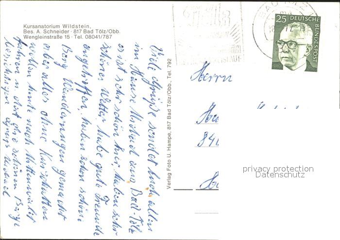 72022080 alte Postkarte Bad Toelz Kursanatorium Wildstein postalisch gelaufen Erhaltung siehe scans KatCode: 11110009173112
