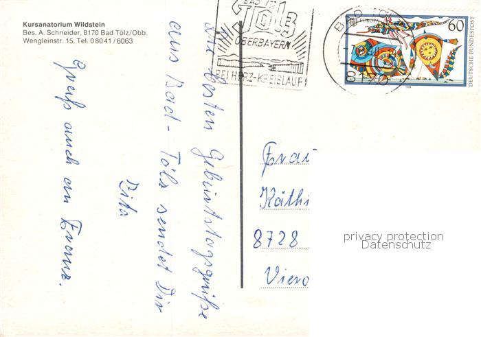 73874045 alte Postkarte Bad Toelz Kursanatorium Wildstein Fliegeraufnahmen postalisch gelaufen Erhaltung siehe scans [WerneD78] KatCode: 11110009173112