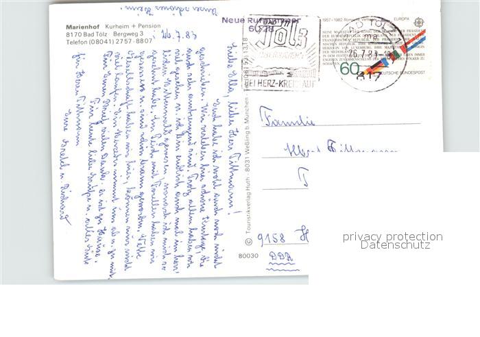 72612682 alte Postkarte Bad Toelz Marienhof postalisch gelaufen Erhaltung siehe scans [AndreD76] KatCode: 11110009173112