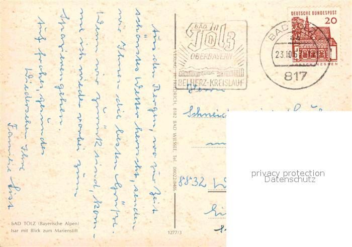 72757995 alte Postkarte Bad Toelz Marienstift postalisch gelaufen Erhaltung siehe scans [NatalD47] KatCode: 11110009173112