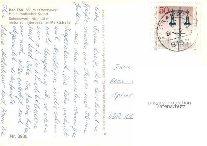 72869434 alte Postkarte Bad Toelz Marktstrasse postalisch gelaufen Erhaltung siehe scans [NatalD47] KatCode: 11110009173112