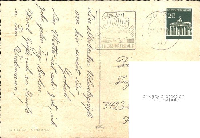 72415399 alte Postkarte Bad Toelz Marktstrasse postalisch gelaufen Erhaltung siehe scans KatCode: 11110009173112