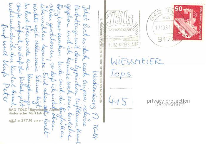 72891208 alte Postkarte Bad Toelz Marktstrasse Brunnen postalisch gelaufen Erhaltung siehe scans [WerneD78] KatCode: 11110009173112