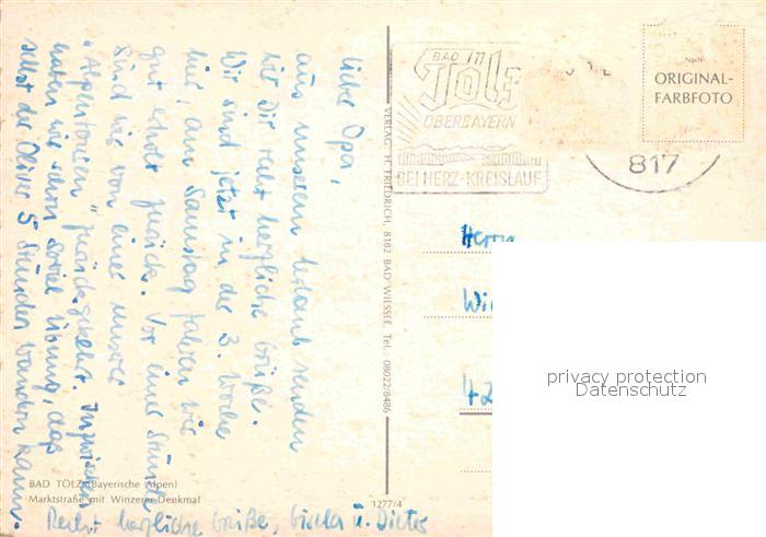 72658212 alte Postkarte Bad Toelz Marktstrasse Winzerer-Denkmal postalisch gelaufen Erhaltung siehe scans [AndreD76] KatCode: 11110009173112