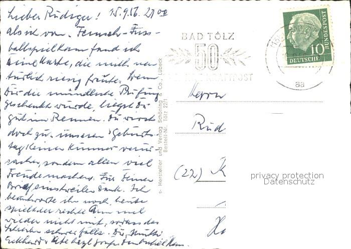 71942100 alte Postkarte Bad Toelz Panorama Blick auf die Isar und Tiroler Berge postalisch gelaufen Erhaltung siehe scans KatCode: 11110009173112