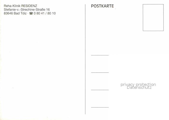 72865413 Bad Toelz Reha Klinik Residenz postalisch nicht gelaufen Erhaltung siehe scans [FriedD77] KatCode: 11110009173112