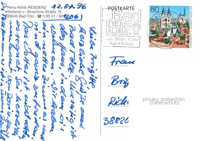 72827042 alte Postkarte Bad Toelz Rehaklinik Residenz postalisch gelaufen Erhaltung siehe scans [FriedD77] KatCode: 11110009173112