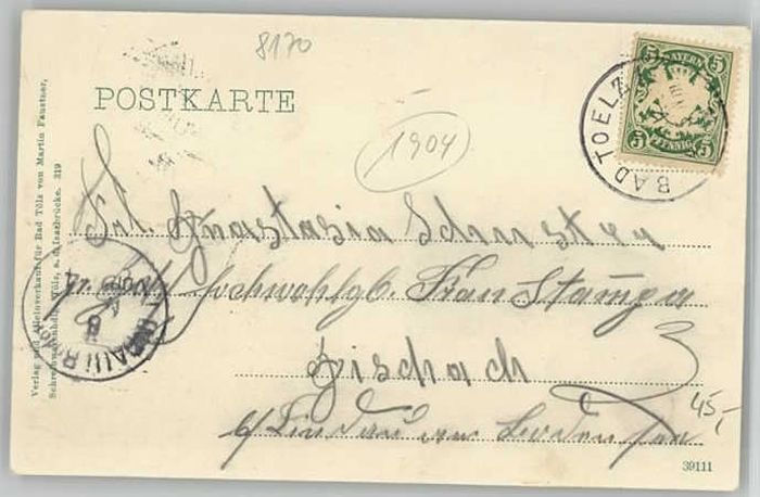 40206767 Bad Toelz Stempelabschlag] Georg Waldherr x 1904 KatCode 11110009173112