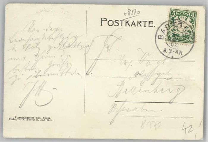 40207003 Bad Toelz Stempelabschlag] Leonhardsklause x 1908 KatCode 11110009173112