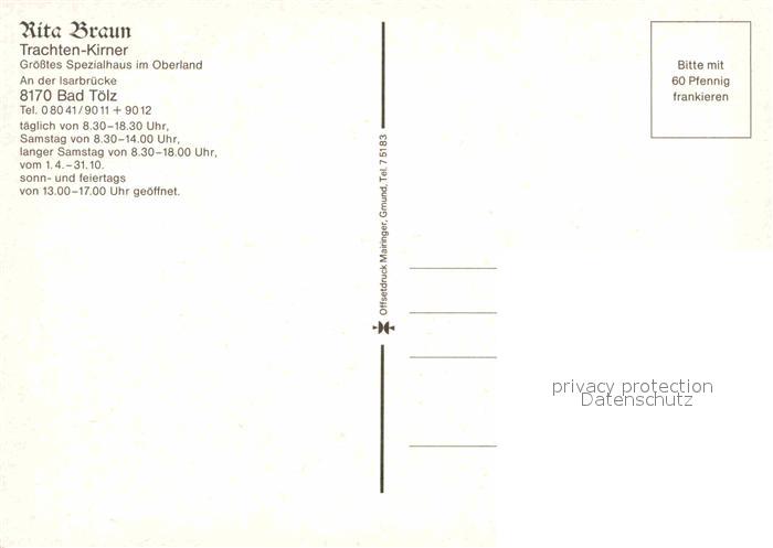 72846185 Bad Toelz Trachten Kirner Ladengeschaeft postalisch nicht gelaufen Erhaltung siehe scans [FriedD77] KatCode: 11110009173112