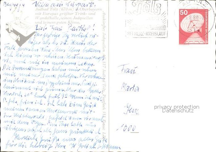 72229553 alte Postkarte Bad Toelz Trink und Wandelhalle Konzertsaal postalisch gelaufen Erhaltung siehe scans KatCode: 11110009173112