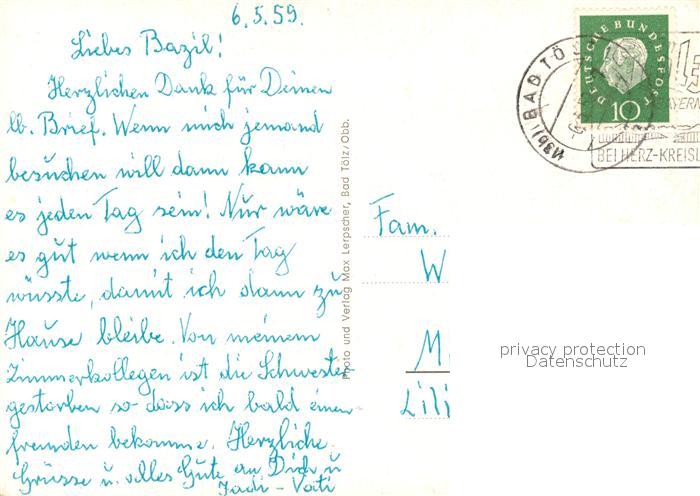 73152628 alte Postkarte Bad Toelz Trinkhalle Wandelhalle Stadtpanorama mit Alpen postalisch gelaufen Erhaltung siehe scans [FriedD77] KatCode: 11110009173112