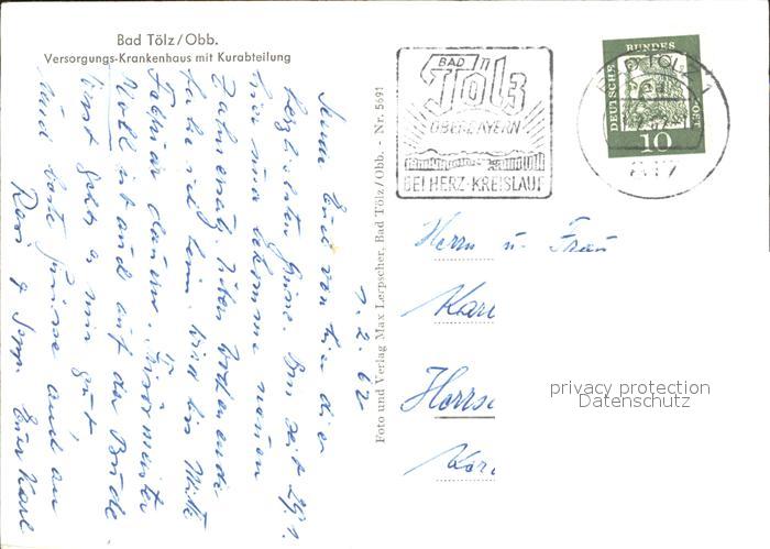 72374496 alte Postkarte Bad Toelz Versorgungs-Krankenhaus Kurabteilung postalisch gelaufen Erhaltung siehe scans KatCode: 11110009173112