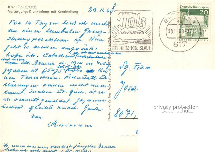 73549940 alte Postkarte Bad Toelz Versorgungs Krankenhaus mit Kurabteilung postalisch gelaufen Erhaltung siehe scans [WerneD78] KatCode: 11110009173112