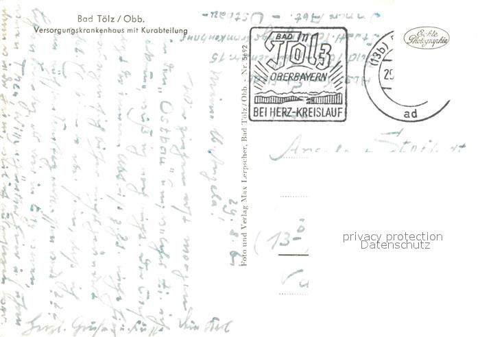 73162482 alte Postkarte Bad Toelz Versorgungskrankenhaus mit Kurabteilung postalisch gelaufen Erhaltung siehe scans [WerneD78] KatCode: 11110009173112
