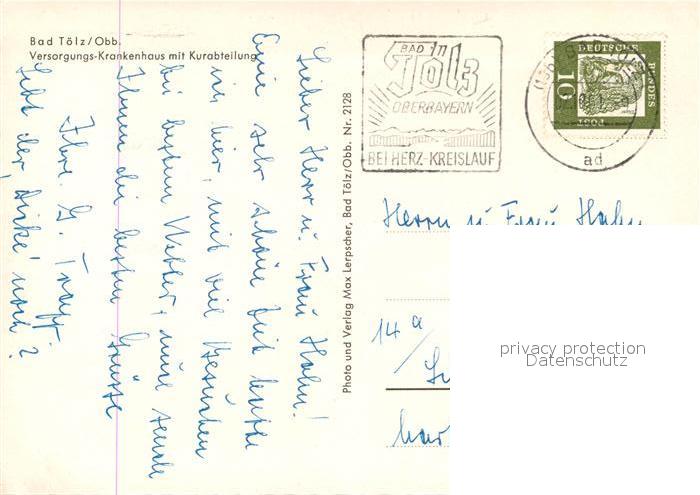 73161104 alte Postkarte Bad Toelz Versorgungskrankenhaus mit Kurabteilung postalisch gelaufen Erhaltung siehe scans [FriedD77] KatCode: 11110009173112