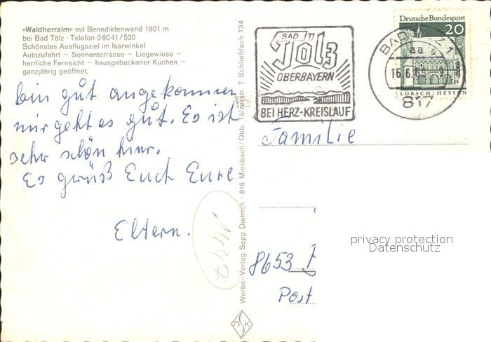 72076822 alte Postkarte Bad Toelz Waldherralm Benediktenwand postalisch gelaufen Erhaltung siehe scans KatCode: 11110009173112