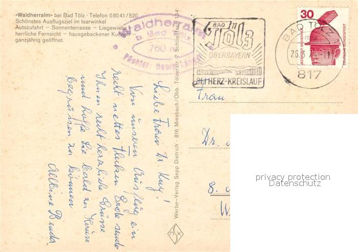 73256589 alte Postkarte Bad Toelz Waldherralm Berggaststaette Terrasse postalisch gelaufen Erhaltung siehe scans [FriedD77] KatCode: 11110009173112