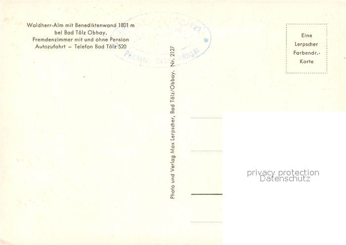 73256588 Bad Toelz Waldherralm mit Benediktenwand Bayerische Voralpen postalisch nicht gelaufen Erhaltung siehe scans [FriedD77] KatCode: 11110009173112