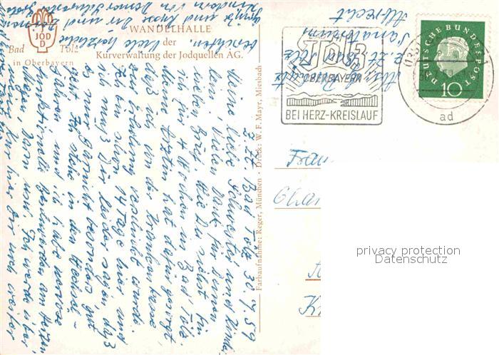 72846018 alte Postkarte Bad Toelz Wandelhalle postalisch gelaufen Erhaltung siehe scans [LiesaD40] KatCode: 11110009173112
