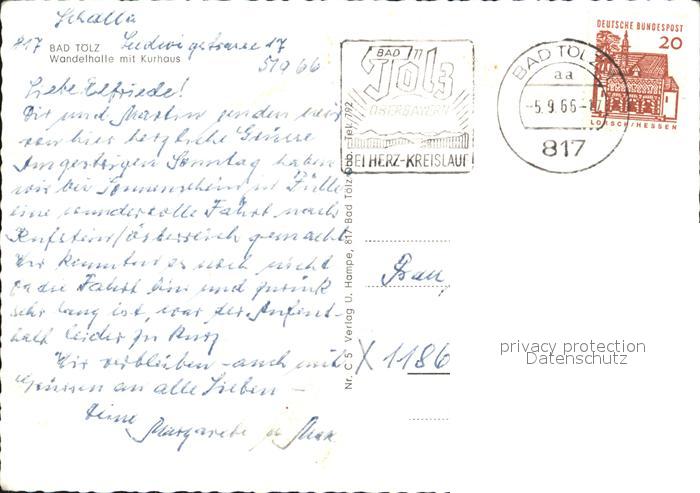 72579253 alte Postkarte Bad Toelz Wandelhalle im Kurhaus postalisch gelaufen Erhaltung siehe scans [LiesaD40] KatCode: 11110009173112
