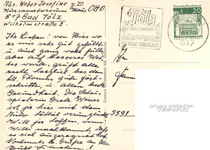 72901143 alte Postkarte Bad Toelz Wandelhalle Kurhaus Trinkhalle Kalvarienberg postalisch gelaufen Erhaltung siehe scans [PaolaD17] KatCode: 11110009173112