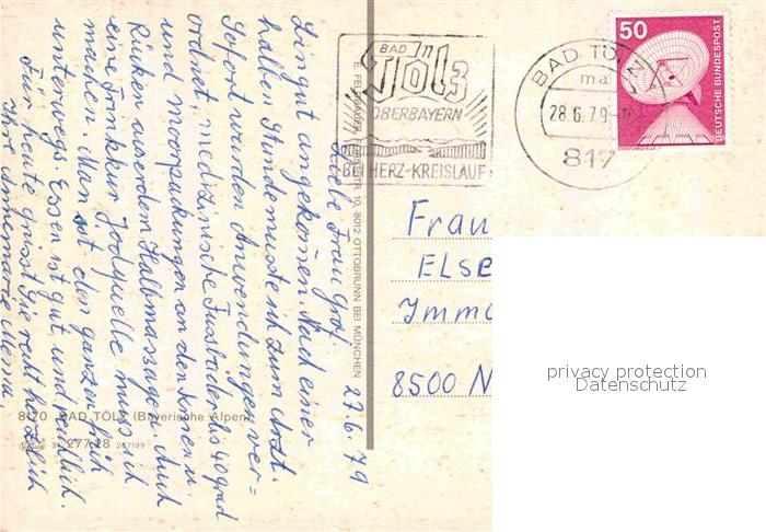 72760954 alte Postkarte Bad Toelz Winzerer Denkmal Historische Marktstrasse Kurhaus Kurpark Strassencafe Isar Stausee postalisch gelaufen Erhaltung siehe scans [FriedD77] KatCode: 11110009173112