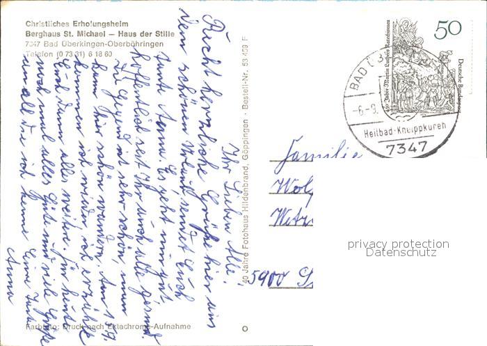72580572 alte Postkarte Bad ueberkingen Christliches Erholungsheim Berghaus St Michael postalisch gelaufen Erhaltung siehe scans [KathaD79] KatCode: 11110008117007