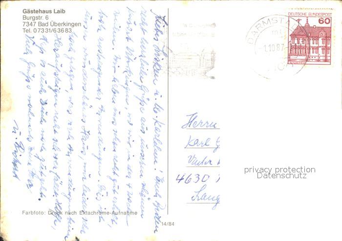 72526617 alte Postkarte Bad ueberkingen Gaestehaus Laib postalisch gelaufen Erhaltung siehe scans KatCode: 11110008117007