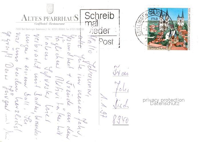 73129533 alte Postkarte Bad ueberkingen Golfhotel-Restaurant Altes Pfarrhaus postalisch gelaufen Erhaltung siehe scans [PaolaD17] KatCode: 11110008117007