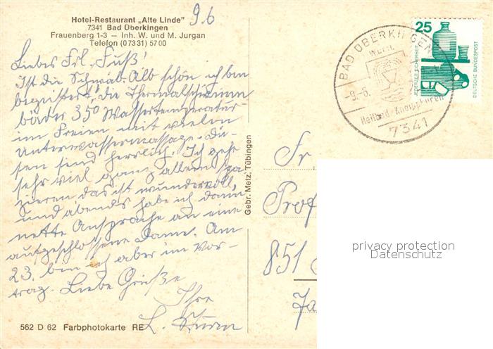 73040883 alte Postkarte Bad ueberkingen Hotel Restaurant Alte Linde postalisch gelaufen Erhaltung siehe scans [FriedD77] KatCode: 11110008117007