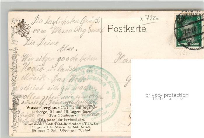 43349259 alte Postkarte Bad ueberkingen Wasserberghaus mit Jugendherberge postalisch gelaufen Erhaltung siehe scans [FriedD77] KatCode: 11110008117007