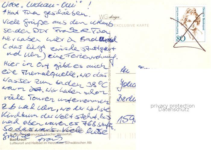 72948243 alte Postkarte Bad Urach Burg Hohenurach Marktplatz Rathaus Marktbrunnen postalisch gelaufen Erhaltung siehe scans [KathaD81] KatCode: 11110008415078