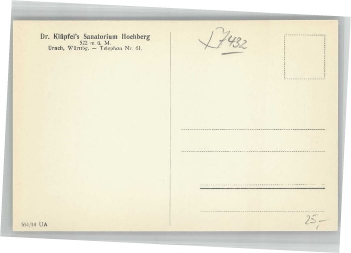 40711253 Bad Urach Dr. Klüpfel Sanatorium Hochberg KatCode 11110008415078