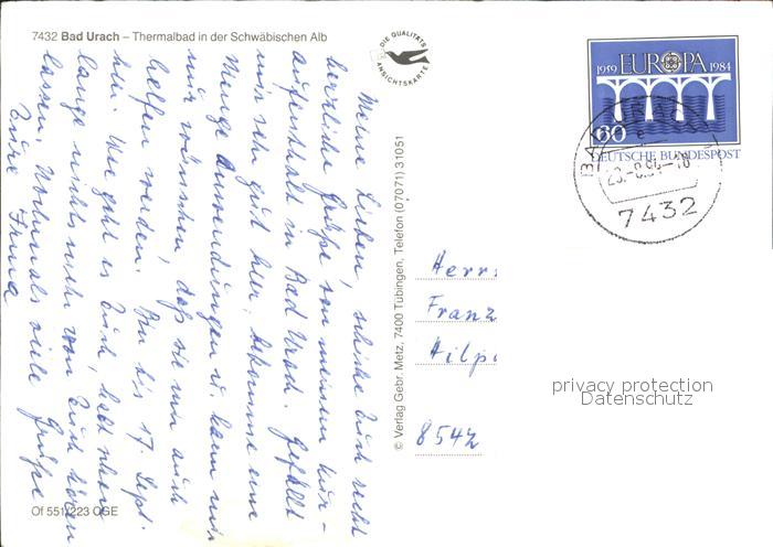 72535516 alte Postkarte Bad Urach Fachwerkhaus mit Brunnen postalisch gelaufen Erhaltung siehe scans [AndreD76 kt121box] KatCode: 11110008415078