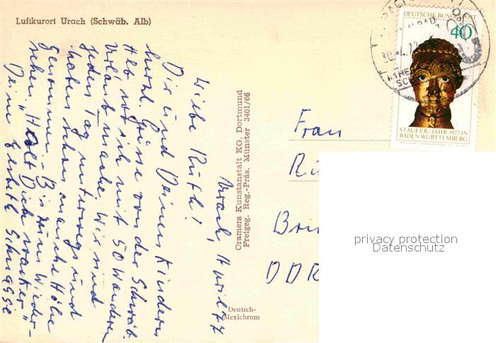 72782859 alte Postkarte Bad Urach Fliegeraufnahme postalisch gelaufen Erhaltung siehe scans [WerneD78] KatCode: 11110008415078