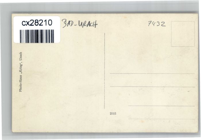 30908921 Bad Urach [handschriftlich] postalisch nicht gelaufen KatCode: 11110008415078