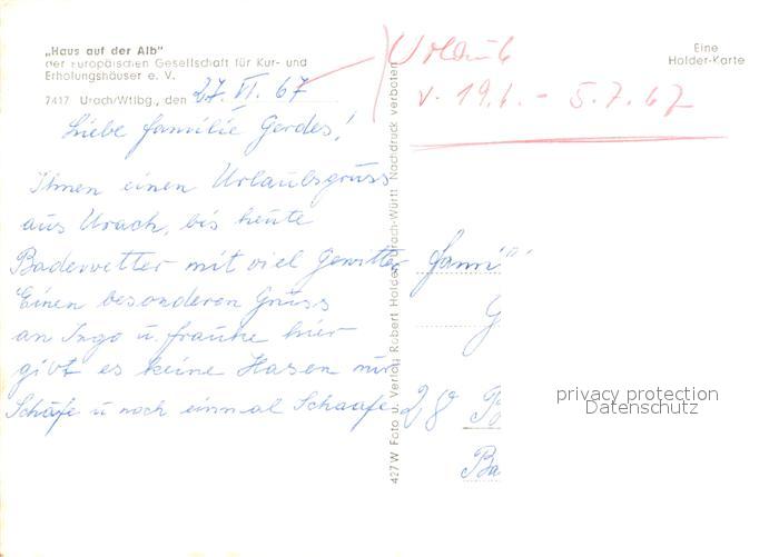 72952719 Bad Urach Haus auf der Alb Kurhaus Erholungsheim postalisch nicht gelaufen Erhaltung siehe scans [FriedD77] KatCode: 11110008415078