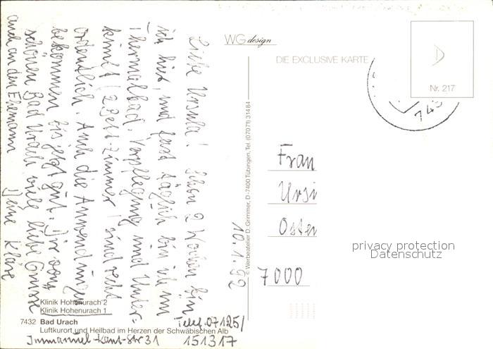 72376709 alte Postkarte Bad Urach Klinik Hohenurach 1 und 2 postalisch gelaufen Erhaltung siehe scans KatCode: 11110008415078