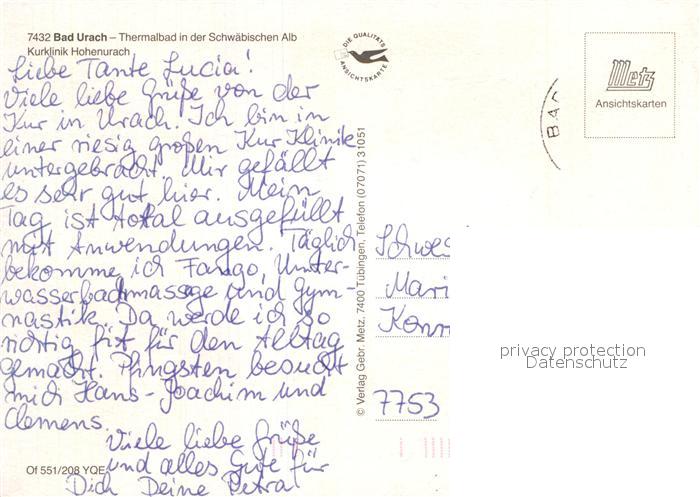 72951783 alte Postkarte Bad Urach Kurklinik Hohenurach postalisch gelaufen Erhaltung siehe scans [PaolaD17] KatCode: 11110008415078