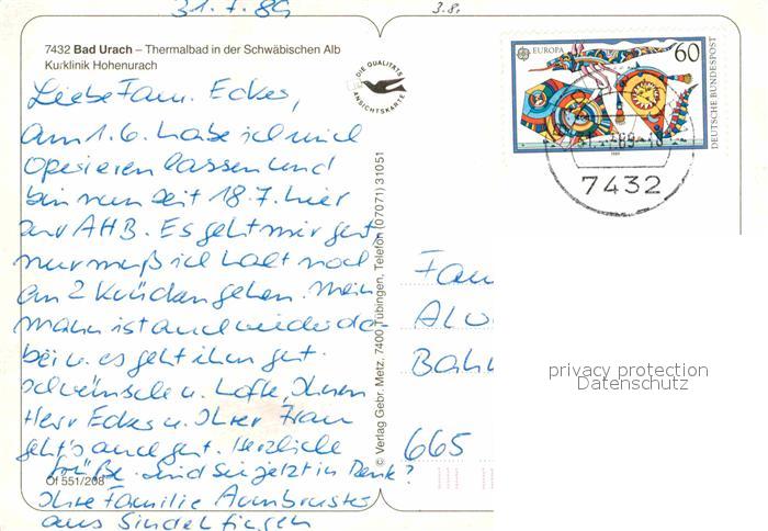 72756520 alte Postkarte Bad Urach Kurklinik Hohenurach postalisch gelaufen Erhaltung siehe scans [WerneD78] KatCode: 11110008415078